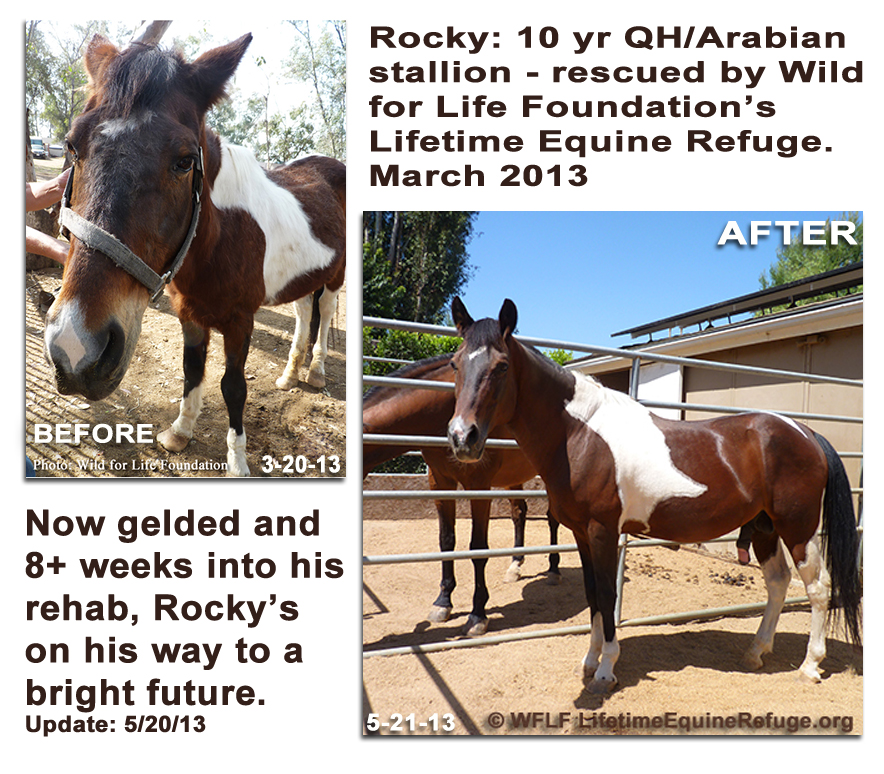 for him any longer. Wild for Life Foundation representatives assessed his situation and found this gentle gelding in dire need. We rescued Louie and took him under our care in April. Do you have room in your heart and in your barn? Those interested and experienced in equine care, training, or transport are invited to join WFLF's Safe Haven Network by volunteering, or helping to foster or adopt a horse in need. With your help, these horses and others like them will always be safe and cared for.